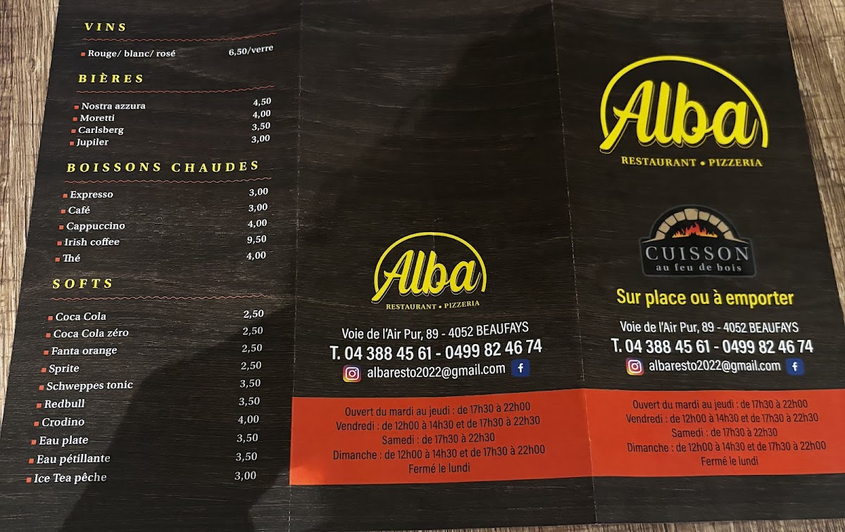 Pizzeria Alba Beaufays Menu